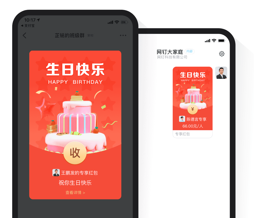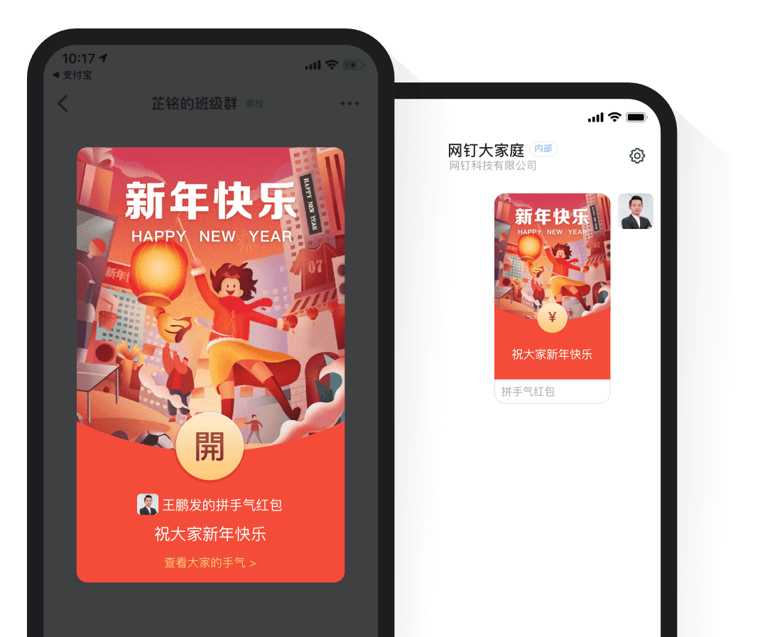 红包主题 提供多种场景和多种款式的红包样式,用户轻松编辑红包主题图片,红包更具个性,员工关怀和激励更有仪式感 注册钉钉