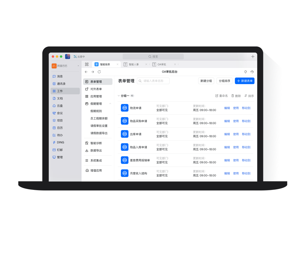 行政管理物资领用、出入凭证、车辆调配、访客登记等摆脱纸质流程。