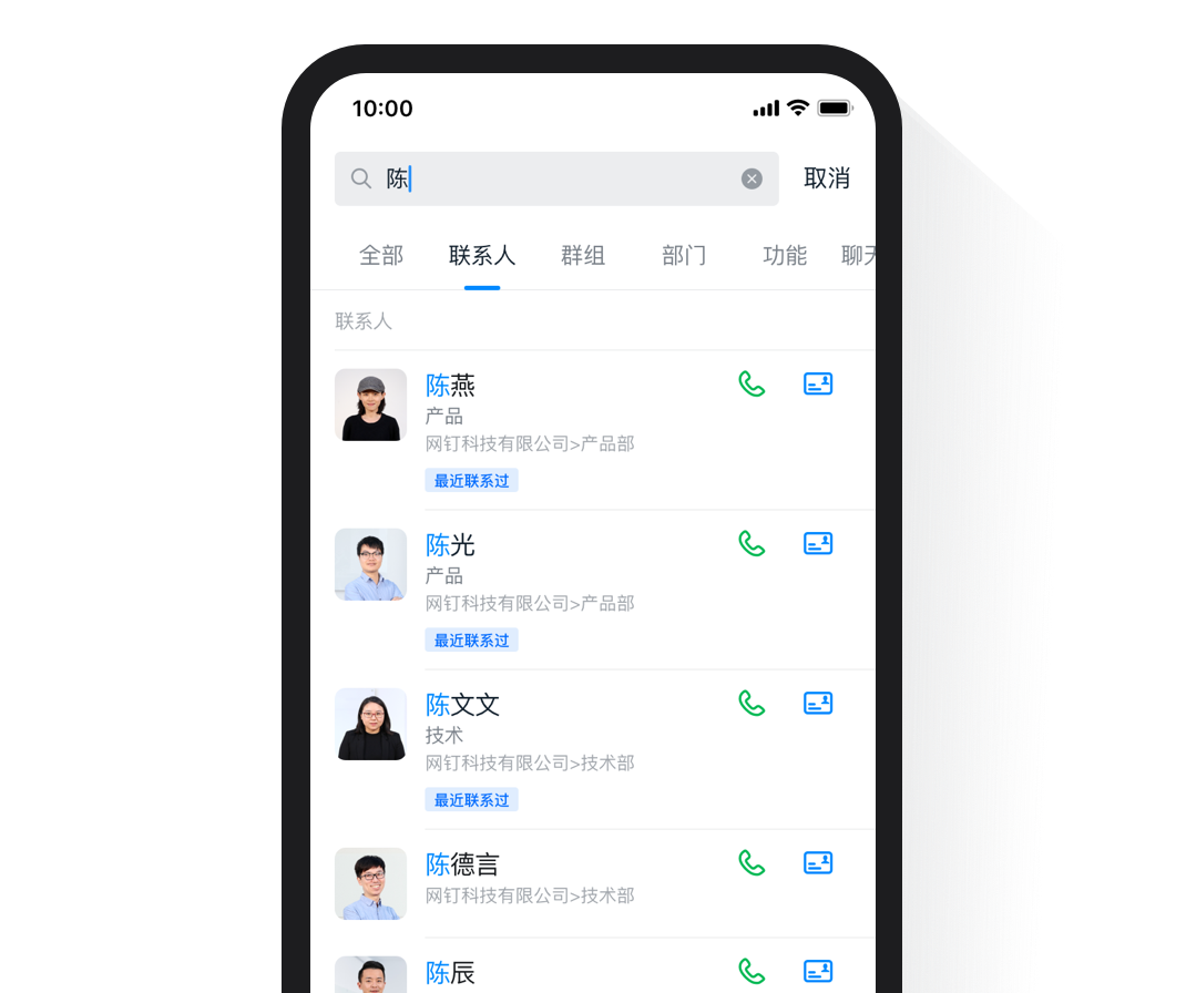 快速找人跨部门沟通协同,在企业的通讯录中快速找到同事,不用加好友即可发起聊天,简单高效。