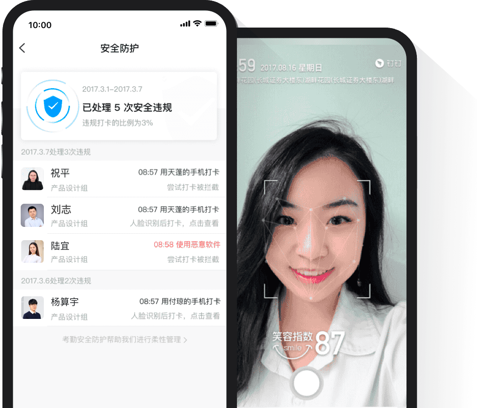 员工人性化考勤上班时间到公司,打开钉钉自动打卡,再也不用担心忘打卡了。