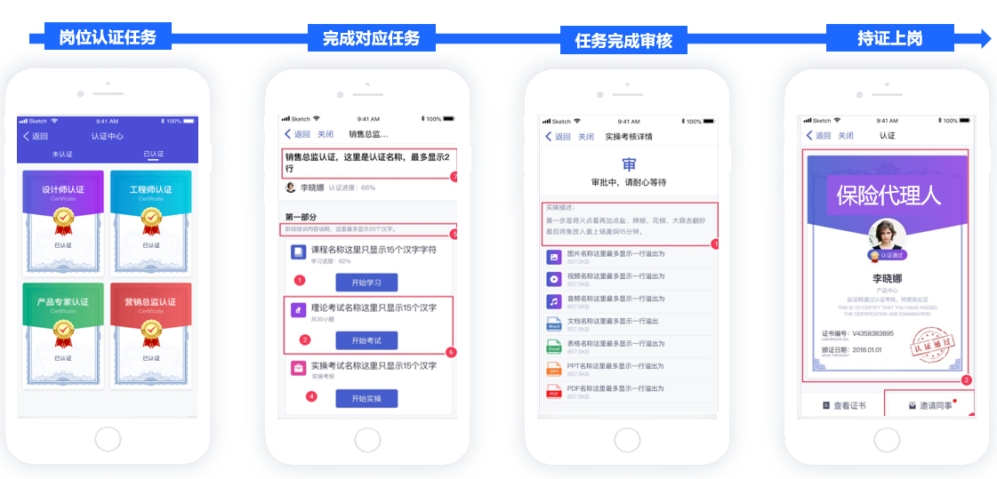 理论+实操+关键任务,认证人打分学习模式,打造“知-行-证”全新学习模型,实现标准技能快速复制,打通员工晋升渠道。
