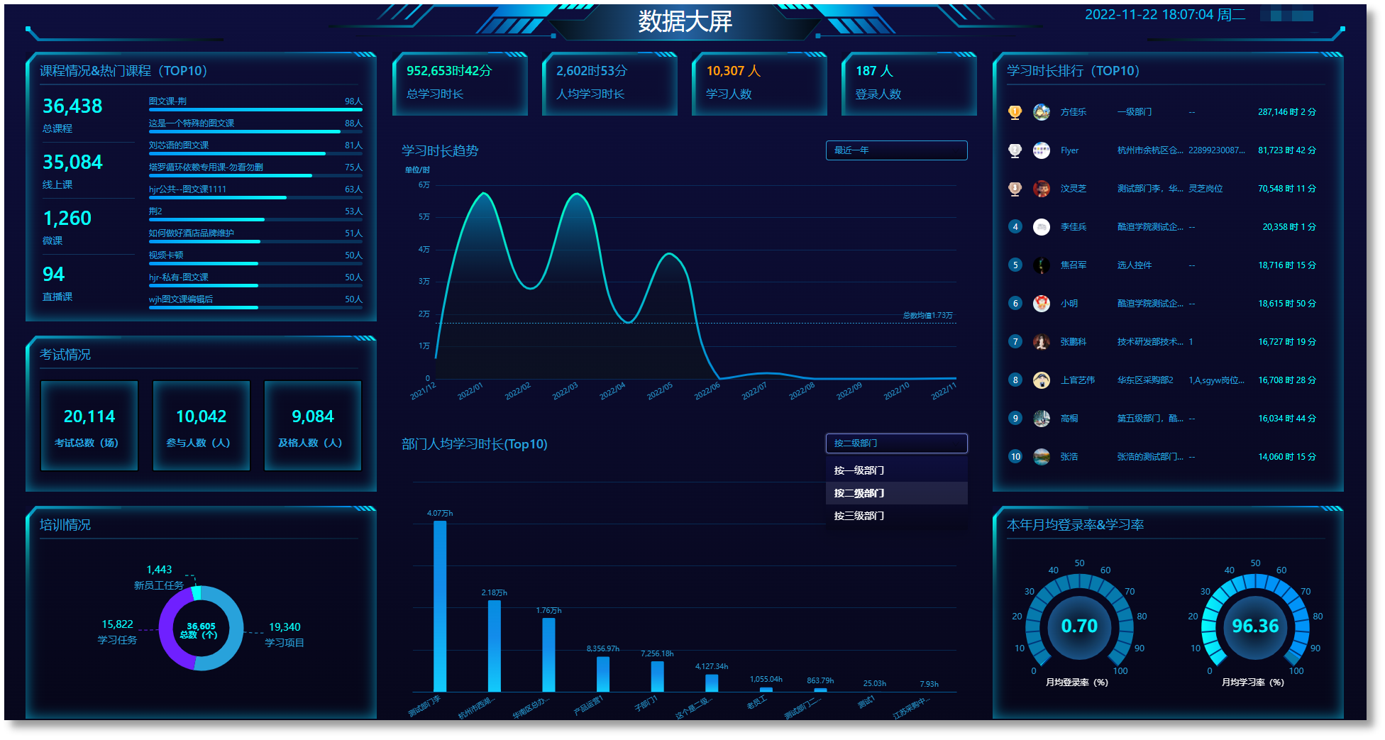从不同维度统计和分析人才分布、学习KPI、总结经验,通过数据管理全方位支持决策分析,优化运营策略,提升运营效率。